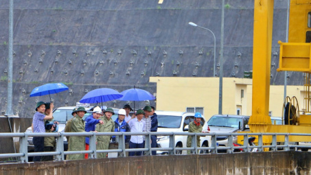 Đoàn công tác liên ngành tỉnh Thanh Hóa kiểm tra công tác ứng phó bão số 5 tại Thủy điện Trung Sơn