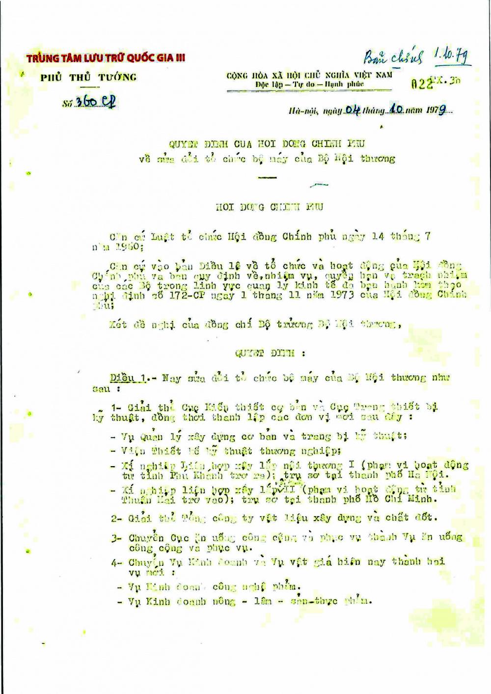 Tương tự, trước thời kỳ Đổi mới (1986), một số cơ quan tiền nhiệm của Bộ Công Thương dù đã được phê chuẩn thành lập nhưng phải mất một khoảng thời gian - có trường hợp tới 8 tháng (từ tháng 12/1983 đến tháng 8/1984) như Tổng cục Điện tử và Kỹ thuật tin học - mới có văn bản pháp lý quy định cụ thể nhiệm vụ, quyền hạn, cơ cấu tổ chức.