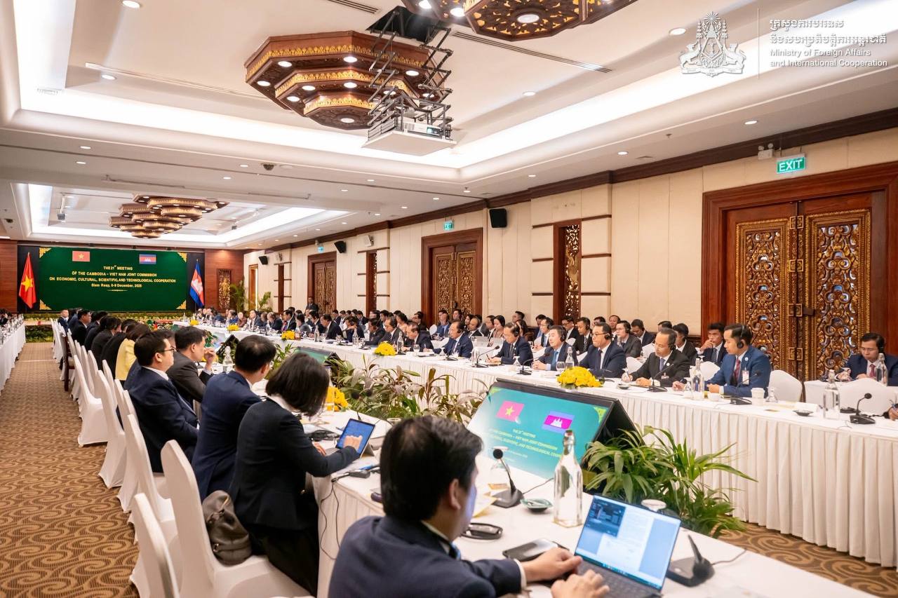 Hai bên nhất trí cho rằng hợp tác kinh tế - thương mại và đầu tư trong thời gian qua tiếp tục phát triển mạnh mẽ, trở thành một điểm sáng nổi bật trong quan hệ song phương. Hai bên vui mừng trước kết quả cuộc hội đàm giữa Bộ trưởng Bộ Công Thương Việt Nam và Bộ trưởng Bộ Thương mại Campuchia ngày 28/4/2025, trong đó đã đề ra nhiều giải pháp quan trọng nhằm hiện thực hóa mục tiêu đưa kim ngạch thương mại song phương đạt 20 tỷ USD theo định hướng của Lãnh đạo cấp cao hai nước. Hai bên hoan nghênh Lễ khai trương cặp cửa khẩu quốc tế Tân Nam (Tây Ninh) – Meun Chey (Prey Veng) ngày 08 tháng 12 năm 2025 dưới sự chứng kiến của Thủ tướng hai nước, có ý nghĩa quan trọng trong thúc đẩy kết nối hạ tầng, tạo thuận lợi cho thương mại biên giới và giao lưu nhân dân. Hợp tác giữa các địa phương tiếp tục phát triển tích cực, thể hiện qua việc tổ chức thành công Hội nghị hợp tác và phát triển các tỉnh biên giới Việt Nam – Campuchia lần thứ 13 (28/11/2025), qua đó khẳng định quyết tâm của hai Chính phủ trong xây dựng đường biên giới hòa bình, ổn định, hợp tác và phát triển bền vững. Hợp tác về giáo dục - đào tạo, viễn thông, nông - lâm - ngư nghiệp, du lịch, tài chính, ngân hàng, y tế, hàng không, năng lượng, dầu khí… cũng tiếp tục được duy trì và thúc đẩy.