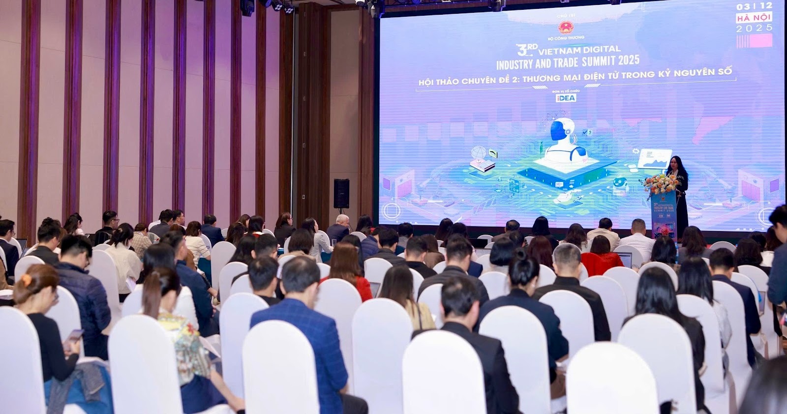 Chiều ngày 3/12/2025, tại Khách sạn Đối Ngoại (Hà Nội), trong khuôn khổ Diễn đàn Chuyển đổi số ngành Công Thương 2025, chuyên đề “Thương mại điện tử trong kỷ nguyên số” đã diễn ra với sự tham dự của đại diện các cơ quan quản lý, các hiệp hội ngành hàng, doanh nghiệp nền tảng và các đơn vị cung cấp giải pháp công nghệ số. Phần thảo luận đã tập trung làm rõ những chuyển biến của thị trường TMĐT Việt Nam và các yêu cầu đặt ra đối với doanh nghiệp trong giai đoạn phát triển mới.