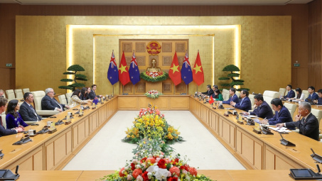 Tiếp Chủ tịch Quốc hội New Zealand Gerry Brownlee nhân dịp Chủ tịch Quốc hội thăm chính thức Việt Nam mới đây, Thủ tướng Phạm Minh Chính đánh giá cao sự phát triển tốt đẹp, thực chất và toàn diện của quan hệ hợp tác song phương kể từ khi hai nước nâng cấp quan hệ lên Đối tác Chiến lược toàn diện nhân chuyến thăm chính thức Việt Nam của Thủ tướng Christopher Luxon tháng 02/2025.