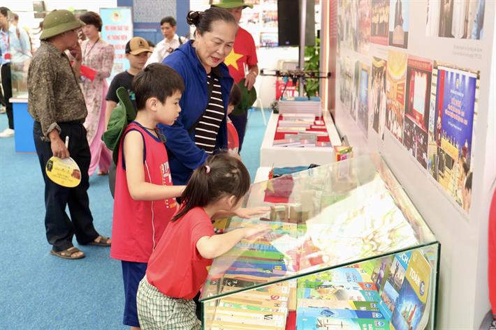 Nhân dân tham quan triển lãm ở khu vực sách giáo khoa