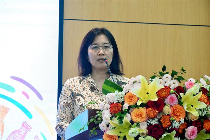 Bà Miki Nozawa – Trưởng ban Giáo dục, Văn phòng UNESCO Hà Nội phát biểu tại hội thảo