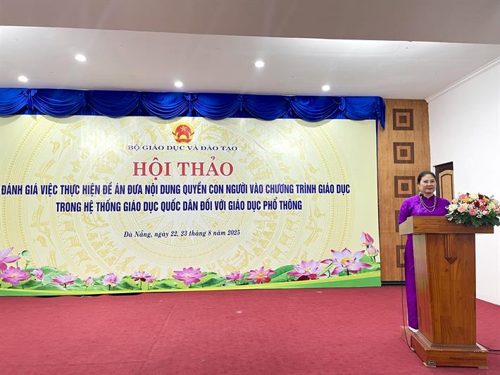 Phát biểu khai mạc hội thảo, PGS.TS Trịnh Hoài Thu, Phó Vụ trưởng Vụ Giáo dục Phổ thông, cho biết: nội dung giáo dục quyền con người đã được triển khai từ lớp 1 đến lớp 12, giúp nâng cao nhận thức và kỹ năng bảo vệ quyền cho học sinh. Tuy đề án đã đạt được nhiều kết quả quan trọng, nhưng quá trình triển khai vẫn còn một số hạn chế, vướng mắc cần rút kinh nghiệm. Đặc biệt, cần tăng cường trao đổi, thảo luận để xác định rõ những nhiệm vụ sẽ tiếp tục thực hiện trong giai đoạn 2026 - 2030.