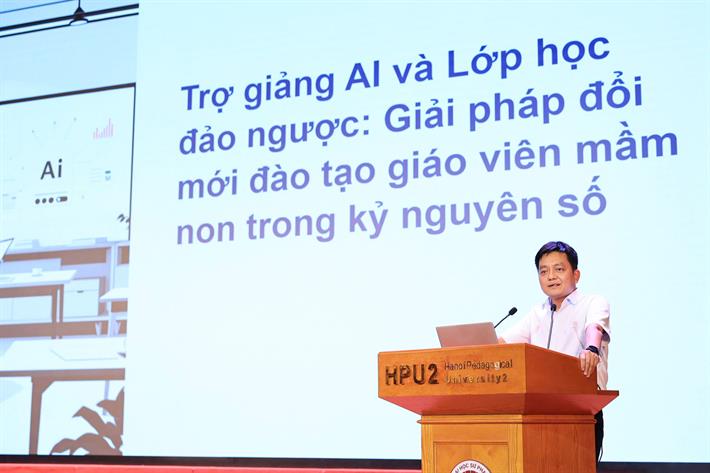 Ông cho rằng mô hình lớp học đảo ngược kết hợp với trợ giảng trí tuệ nhân tạo sẽ là giải pháp hiệu quả trong đào tạo giáo viên mầm non thời kỳ số. Mô hình này giúp cá nhân hóa lộ trình học tập, tăng cường tính chủ động của người học, đồng thời tối ưu hóa trải nghiệm học tập. Bằng việc tích hợp các công nghệ như AI, Microlearning và Learning Analytics, giảng viên có thể phân tích dữ liệu học tập để theo dõi tiến độ, gợi ý tài liệu phù hợp, và đưa ra những hỗ trợ thiết thực cho từng học viên.