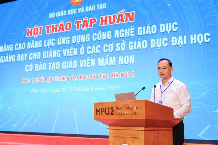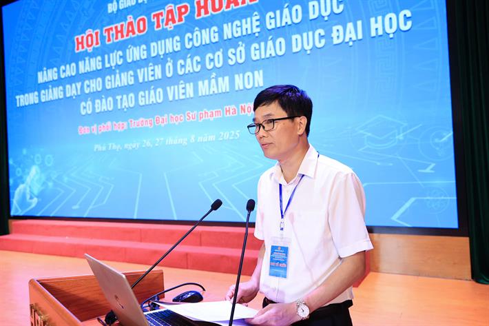 Phó Hiệu trưởng khẳng định hội thảo tập huấn là cơ hội để giảng viên cập nhật và chia sẻ về những nền tảng công nghệ giáo dục tiên tiến nhất hiện nay. Ông bày tỏ kỳ vọng những kết quả từ chương trình sẽ lan tỏa mạnh mẽ đến từng giảng viên, từng nhà trường, từng lớp học mầm non, qua đó góp phần trực tiếp nâng cao chất lượng đào tạo giáo viên và chất lượng giáo dục trẻ em trong giai đoạn mới.