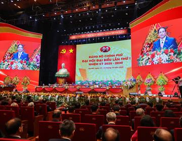 Tuyên bố khai mạc Đại hội đại biểu Đảng bộ Chính phủ lần thứ nhất, nhiệm kỳ 2025-2030, đồng chí Bí thư Đảng ủy Chính phủ, Thủ tướng Chính phủ Phạm Minh Chính nêu rõ: Đảng bộ Chính phủ quyết tâm phấn đấu là một trong những Đảng bộ tiên phong, gương mẫu đi đầu trong triển khai thực hiện thành công Nghị quyết Đại hội XIV của Đảng.