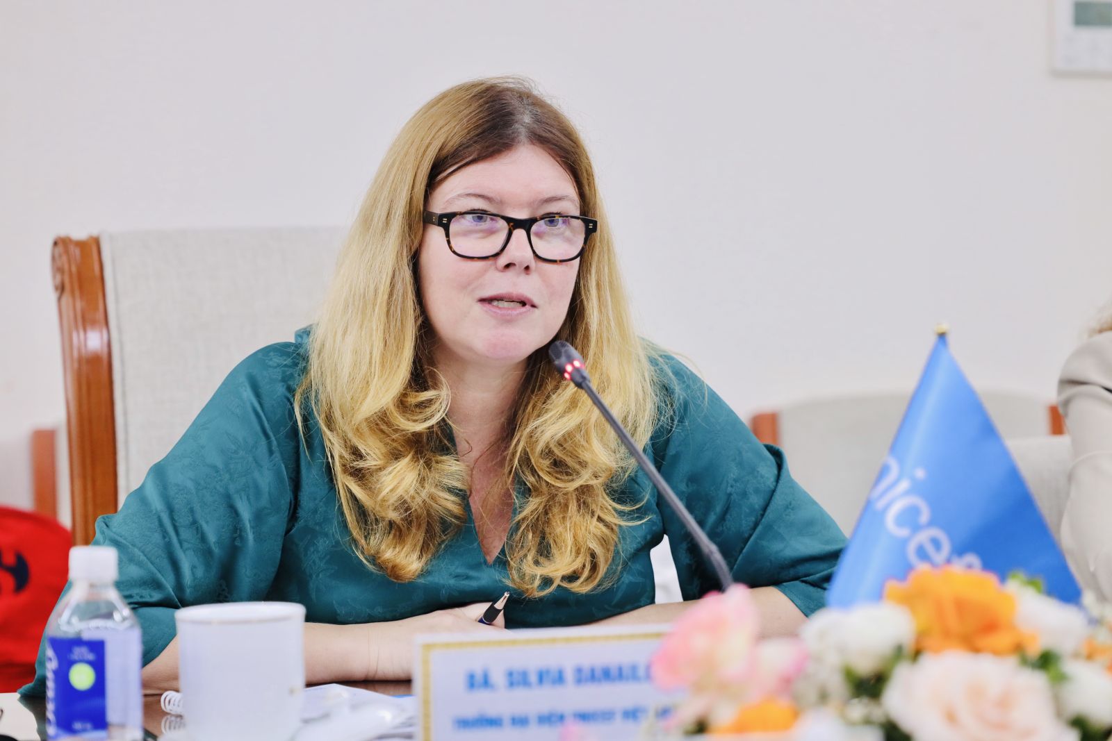 Trưởng đại diện Quỹ nhi đồng Liên hợp quốc tại Việt Nam Silvia Danailov phát biểu tại buổi làm việc