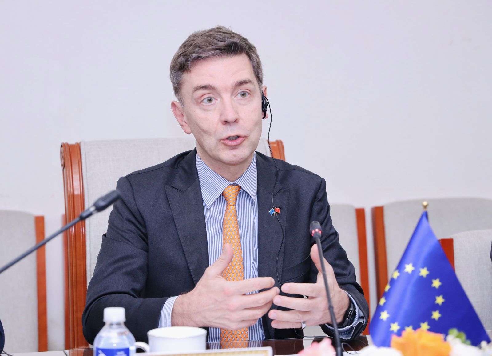 Ông Julien Guerrier, Đại sứ Liên minh Châu Âu (EU) tại Việt Nam, phát biểu tại buổi làm việc