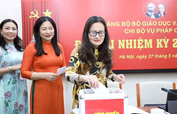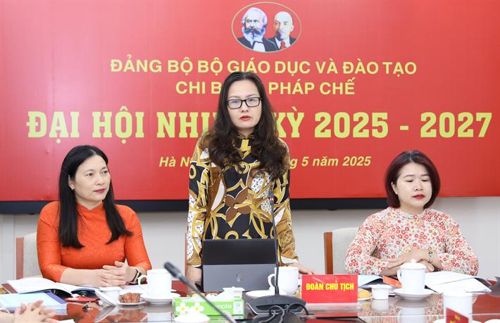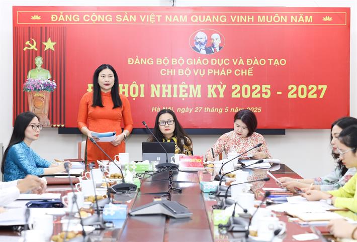 Tại Đại hội, Bí thư Chi bộ, Vụ trưởng Vụ Pháp chế Mai Thị Anh cho biết: Trong nhiệm kỳ 2022 – 2025, Chi bộ Vụ Pháp chế đã tập trung lãnh đạo, chỉ đạo các đảng viên thực hiện tốt nhiệm vụ được giao, thực hiện các Nghị quyết của Chi bộ, của Đảng bộ GDĐT, của Đảng uỷ cấp trên và các chủ trương, đường lối của Đảng, Nhà nước.