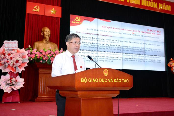 Về lãnh đạo thực hiện nhiệm vụ chuyên môn, Đảng bộ phát huy vai trò hạt nhân chính trị, bám sát chỉ đạo Trung ương và Đảng bộ Bộ GDĐT, tham mưu cụ thể hóa chính sách, triển khai nhiệm vụ gắn với mục tiêu đổi mới toàn diện giáo dục theo Nghị quyết 29-NQ/TW.