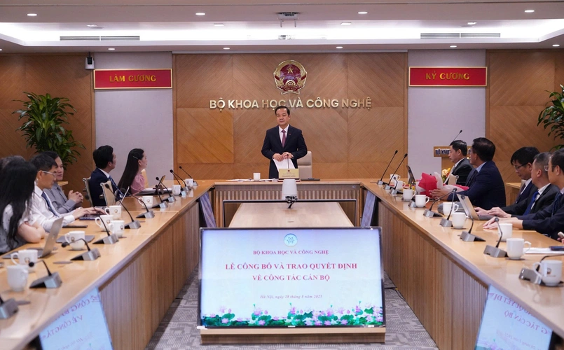 Ngày 28/8/2025, tại Hà Nội, Bộ Khoa học và Công nghệ (KH&CN) tổ chức Lễ công bố và trao các quyết định về công tác cán bộ cho các đơn vị thuộc Bộ gồm: Cục Chuyển đổi số quốc gia, Vụ Đánh giá và Thẩm định công nghệ. Thứ trưởng Bộ KH&CN Phạm Đức Long chủ trì buổi Lễ.
