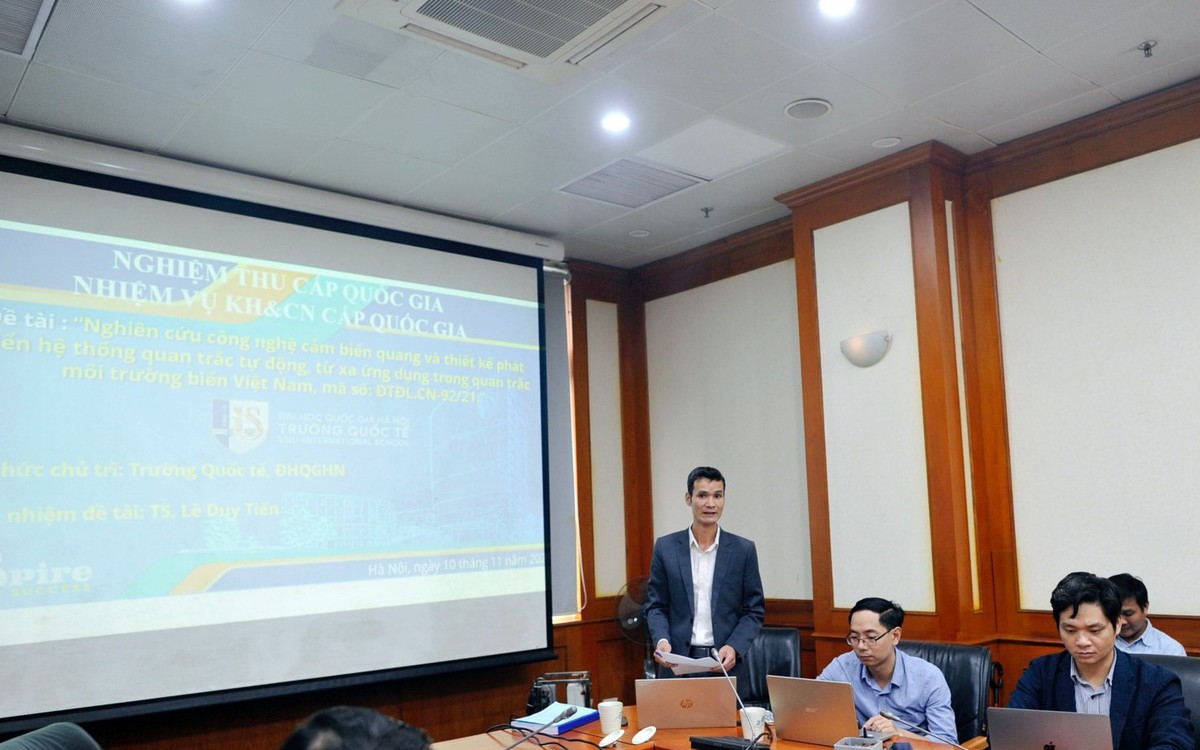 Bộ Khoa học và Công nghệ đã ban hành quyết định số 476/QĐ-BKHCN ngày 15/3/2021 phê duyệt nhiệm vụ "Nghiên cứu công nghệ cảm biến quang và thiết kế phát triển hệ thống quan trắc tự động, từ xa ứng dụng trong quan trắc môi trường biển Việt Nam" do TS. Lê Duy Tiến làm chủ nhiệm, Trường Quốc tế, Đại học Quốc gia Hà Nội là đơn vị chủ trì thực hiện từ tháng 10/2021 đến tháng 9/2025. Mục tiêu của Đề tài bao gồm: