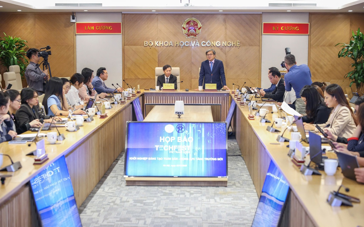 Chiều ngày 03/12/2025, tại Hà Nội, Bộ Khoa học và Công nghệ phối hợp với UBND TP Hà Nội tổ chức họp báo cung cấp thông tin về Ngày hội Khởi nghiệp đổi mới sáng tạo quốc gia - TECHFEST Việt Nam 2025 với chủ đề “Khởi nghiệp sáng tạo toàn dân - Động lực tăng trưởng mới”. Thứ trưởng Bộ KH&CN Hoàng Minh và Phó Chủ tịch UBND TP Hà Nội Trương Việt Dũng đồng chủ trì họp báo.