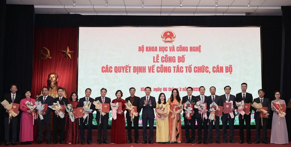 Cũng trong khuôn khổ buổi Lễ, Bộ KH&CN đã công bố các Quyết định điều động, bổ nhiệm lãnh đạo cấp trưởng, cấp phó của các đơn vị trực thuộc Bộ.