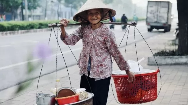 Bà Nguyễn Thị Ngang (còn gọi ngoại Sáu) bền bỉ gánh bánh mì giá rẻ mỗi ngày. (Nguồn: Ban Tuyên giáo và Dân vận Tỉnh ủy Bình Dương)
