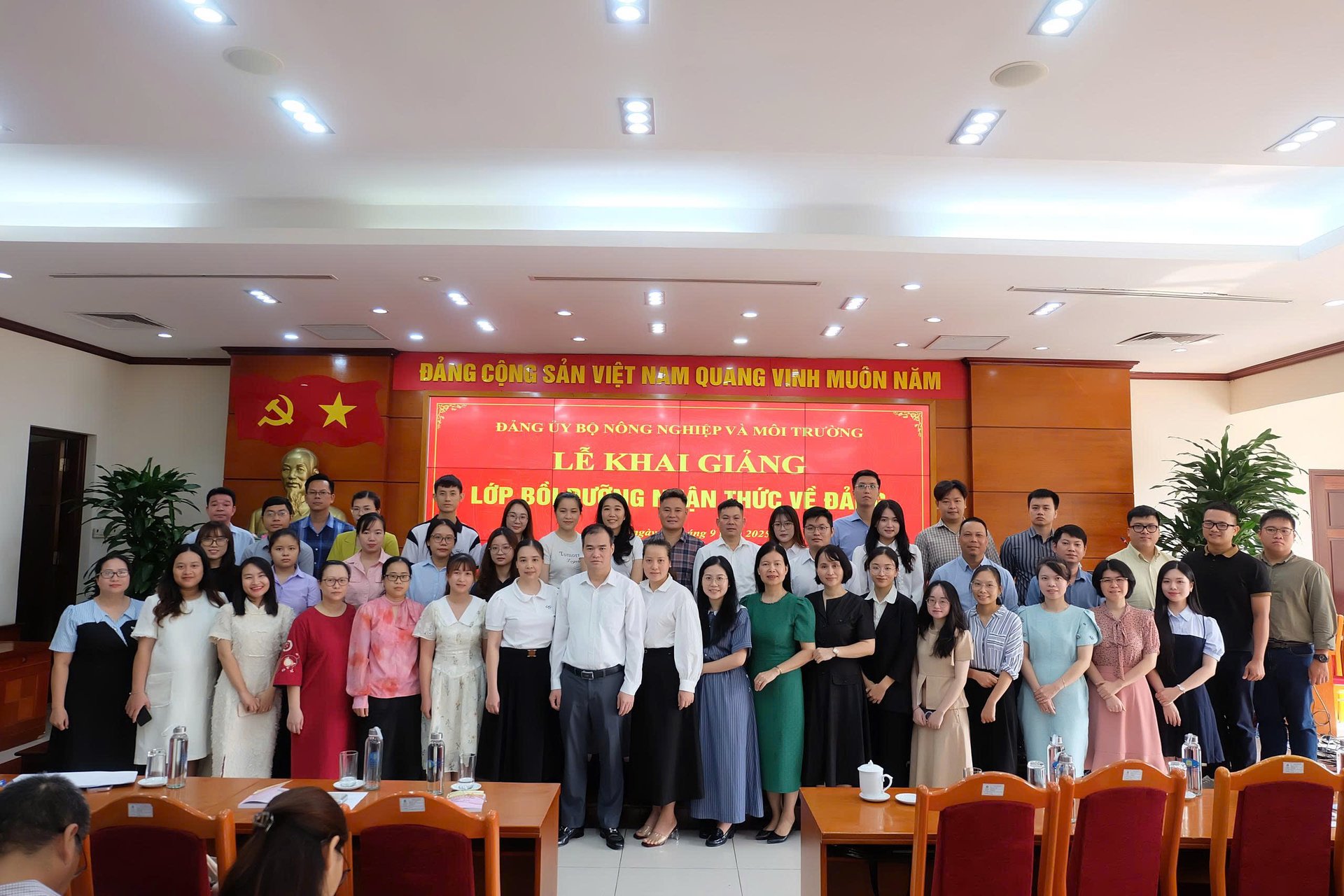 Thực hiện Kế hoạch số 16-KH/ĐU, ngày 22/7/2025 của Đảng ủy Bộ Nông nghiệp và Môi trường về việc tổ chức các lớp bồi dưỡng nhận thức về Đảng và bồi dưỡng lý luận chính trị dành cho đảng viên mới năm 2025, sáng 15/9, Đảng ủy Bộ khai giảng lớp bồi dưỡng nhận thức về Đảng - lớp thứ nhất tại Hà Nội, năm 2025 với sự tham gia của 266 học viên.