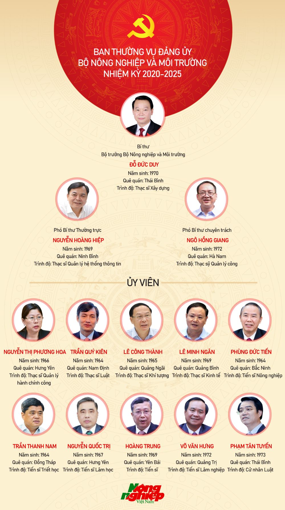 Danh sách Ban Thường vụ Đảng ủy Bộ Nông nghiệp và Môi trường nhiệm kỳ 2020-2025