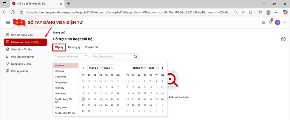 Hỗ trợ sinh hoạt chi bộ: Hỗ trợ chi bộ và đảng viên trong việc chuẩn bị các kỳ sinh hoạt thường kỳ, sinh hoạt chuyên đề thông qua các tính năng như thông báo mời họp, gửi tài liệu họp trực tuyến, và thống kê đảng viên tham gia.