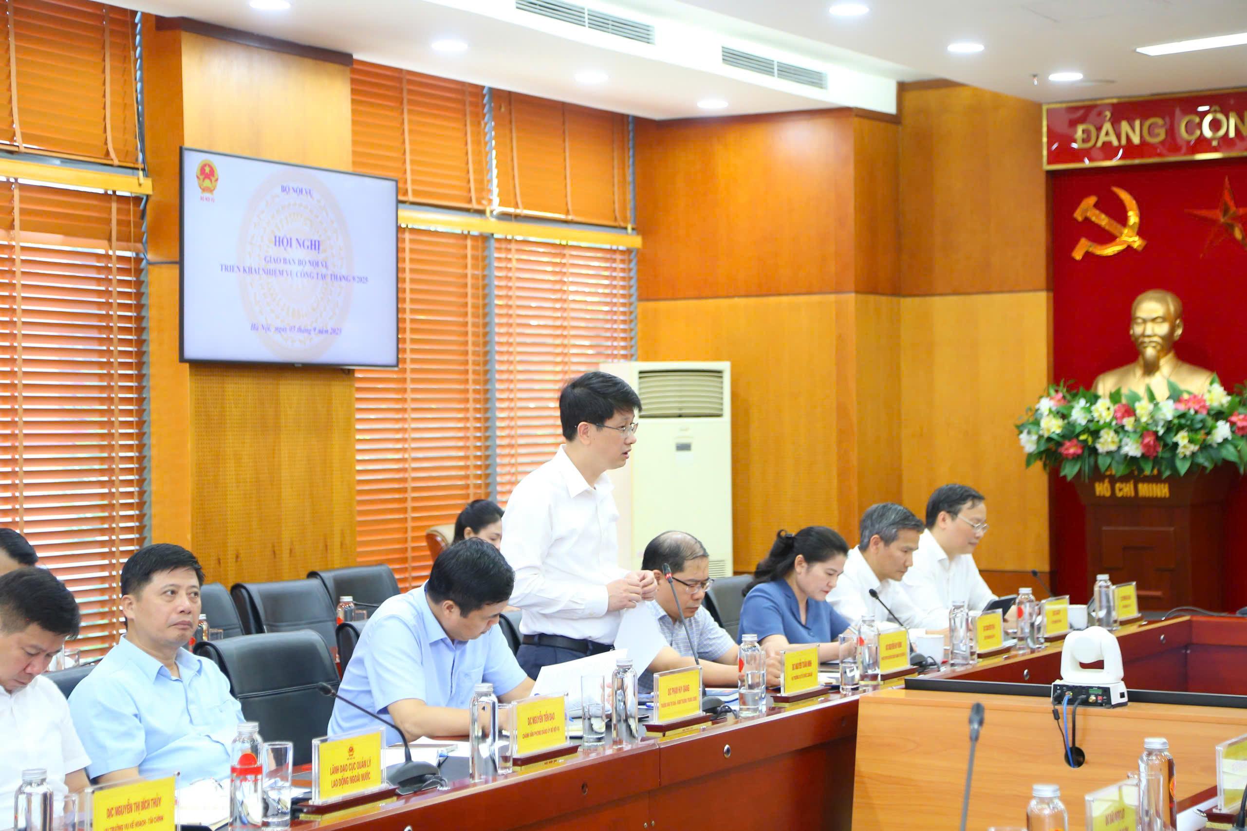 Tại Hội nghị, Chánh Văn phòng Bộ Nội vụ Vũ Xuân Hân đã báo cáo tóm tắt kết quả thực hiện nhiệm vụ công tác tháng 7/2025. Theo đó, Bộ đã ưu tiên mọi nguồn lực, tập trung cao độ tham mưu cho cấp có thẩm quyền triển khai hoàn thành tổ chức thành công Đại hội Đảng bộ Bộ Nội vụ lần thứ I, nhiệm kỳ 2025 – 2030 và các hoạt động kỷ niệm 80 năm thành lập Bộ, ngành Nội vụ gắn với Đại hội thi đua yêu nước lần thứ nhất.