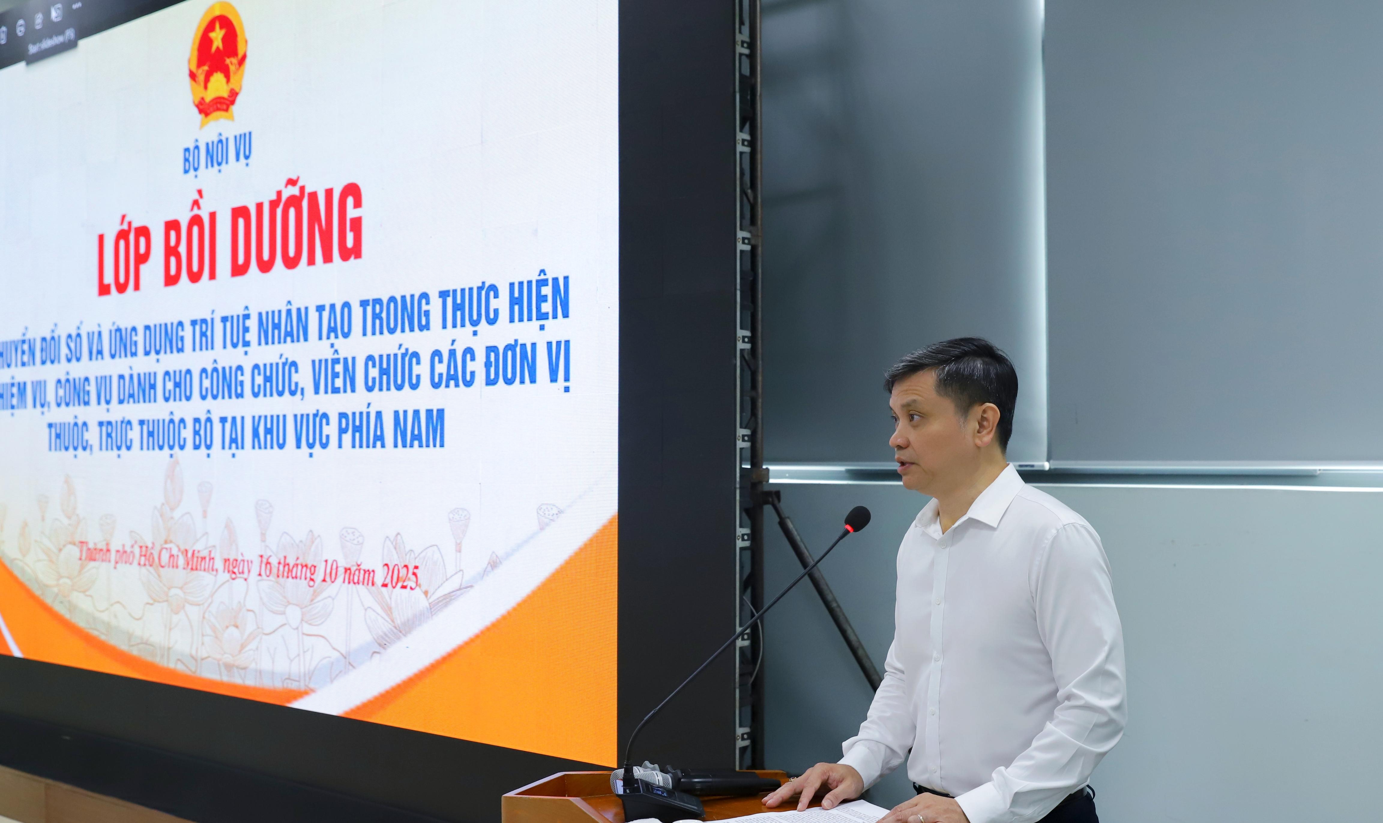Ngày 16/10, tại Thành phố Hồ Chí Minh, Bộ Nội vụ đã khai mạc Lớp bồi dưỡng chuyển đổi số và ứng dụng trí tuệ nhân tạo trong thực hiện nhiệm vụ, công vụ dành cho công chức, viên chức các đơn vị thuộc Bộ, trực thuộc Bộ Nội vụ khu vực phía Nam. Lớp bồi dưỡng diễn ra từ ngày 16/10 đến hết ngày 19/10.