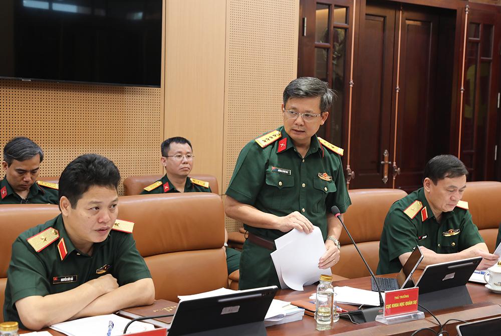 Đại diện Cục Khoa học quân sự báo cáo tại buổi làm việc.