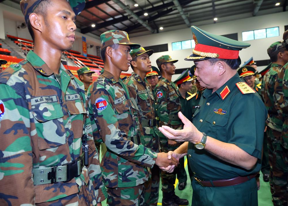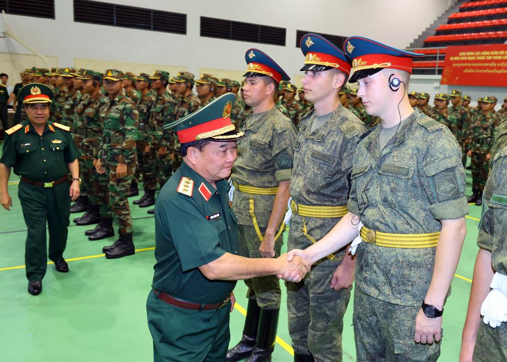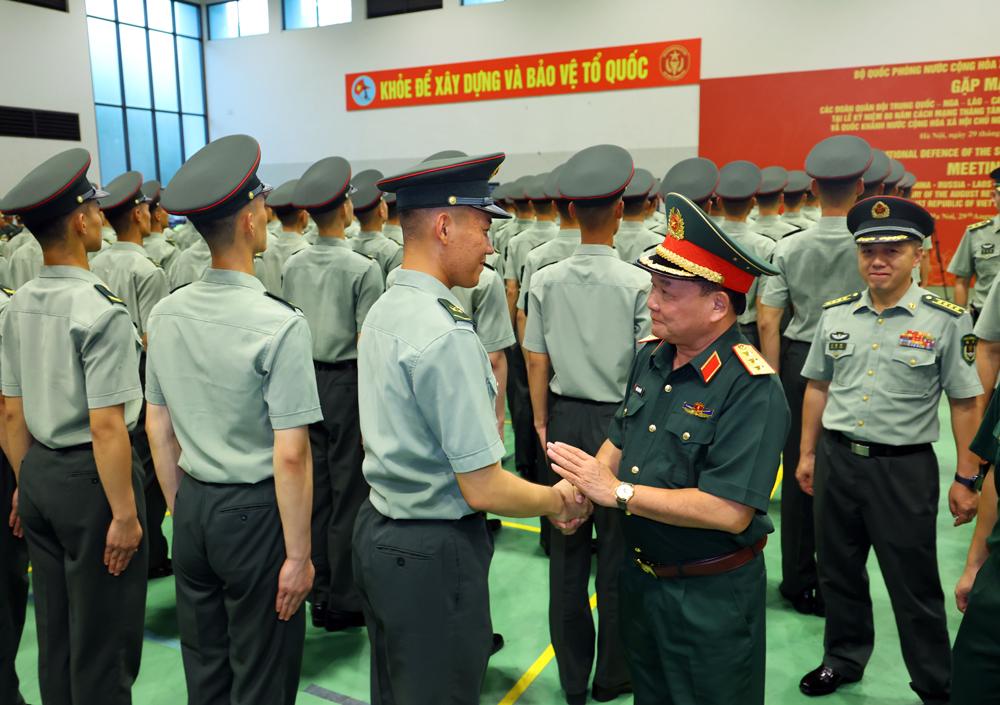 Tham dự buổi gặp mặt có Thiếu tướng Nguyễn Bá Lực, Phó Tổng Tham mưu trưởng QĐND Việt Nam; đại diện lãnh đạo một số cơ quan, đơn vị Bộ Quốc phòng Việt Nam; chỉ huy các đoàn Quân đội Trung Quốc, Liên bang Nga, Lào và Cam-pu-chia cùng toàn thể quân nhân các nước tham gia diễu binh, diễu hành.