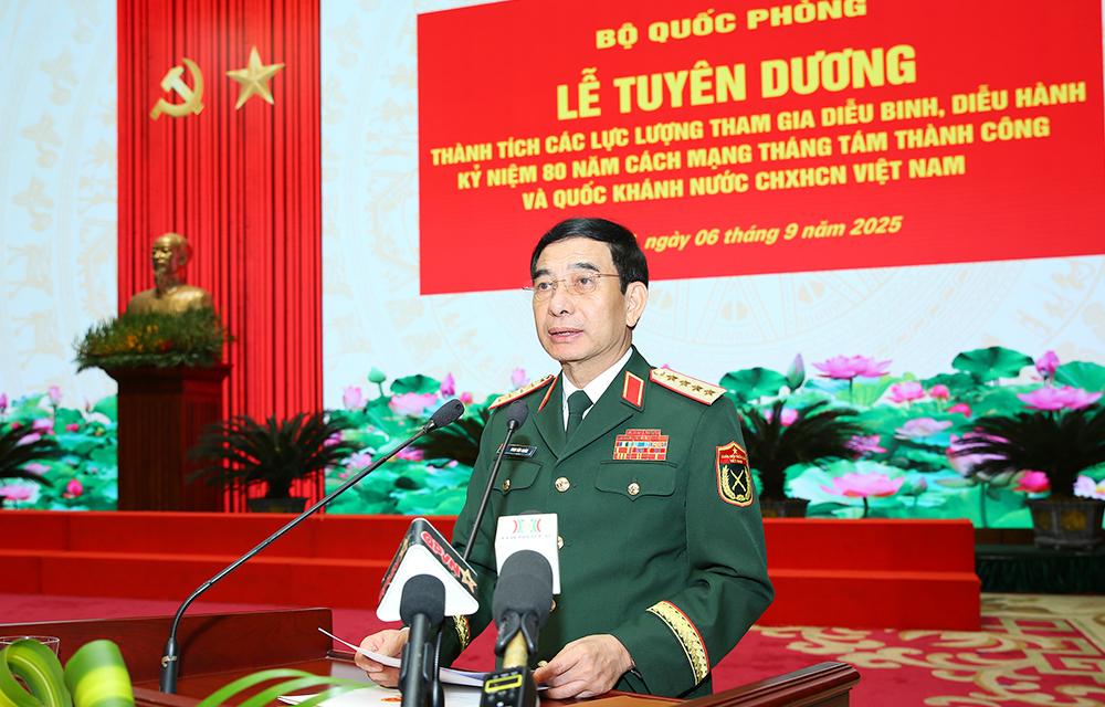 (Bqp.vn) - Chiều 6/9, tại Hà Nội, Bộ Quốc phòng tổ chức Lễ tuyên dương thành tích các lực lượng tham gia diễu binh, diễu hành kỷ niệm 80 năm Cách mạng tháng Tám thành công và Quốc khánh nước Cộng hòa XHCN Việt Nam (nhiệm vụ A80). Đại tướng Phan Văn Giang, Ủy viên Bộ Chính trị, Phó Bí thư Quân ủy Trung ương, Bộ trưởng Bộ Quốc phòng chủ trì buổi lễ.