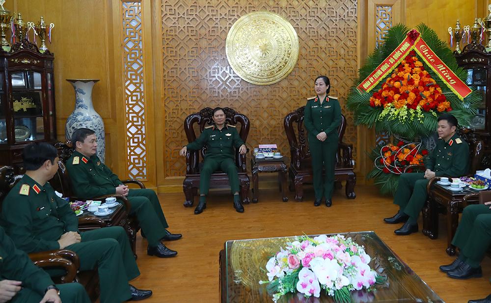 Thiếu tướng Phùng Thị Phú phát biểu tại buổi thăm, chúc mừng.