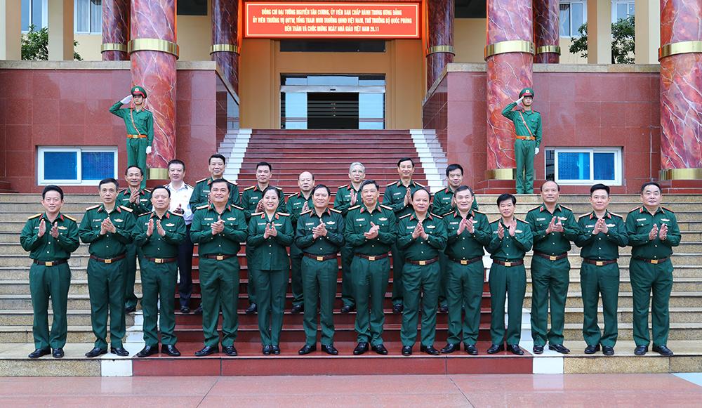 Đại tướng Nguyễn Tân Cương và các đại biểu chụp ảnh cùng lãnh đạo, chỉ huy Học viện Quốc phòng.