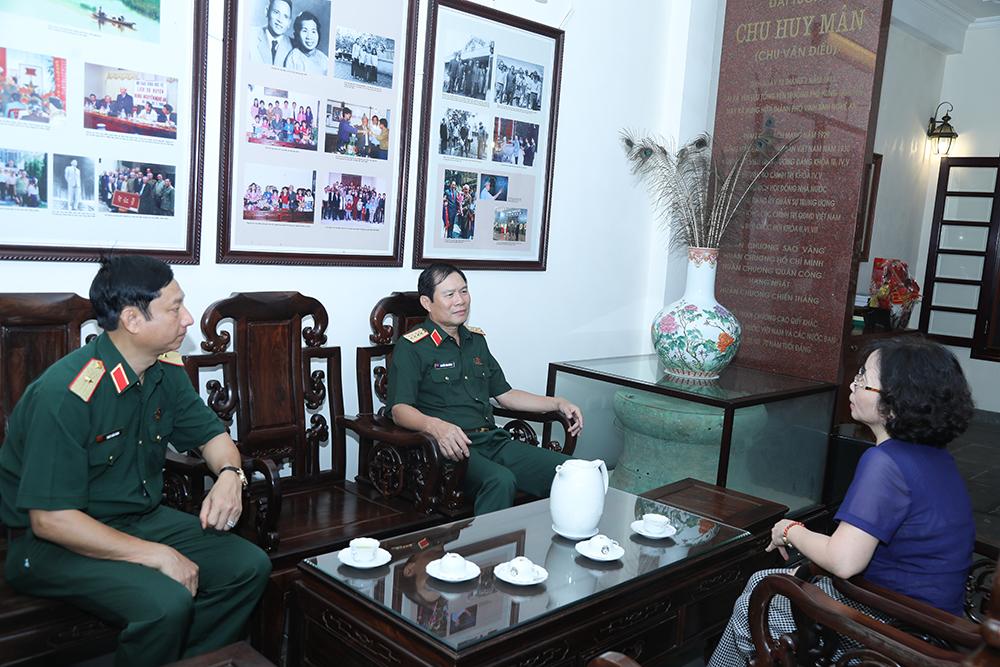 Đại tướng Nguyễn Tân Cương trò chuyện cùng thân nhân gia đình Đại tướng Chu Huy Mân.