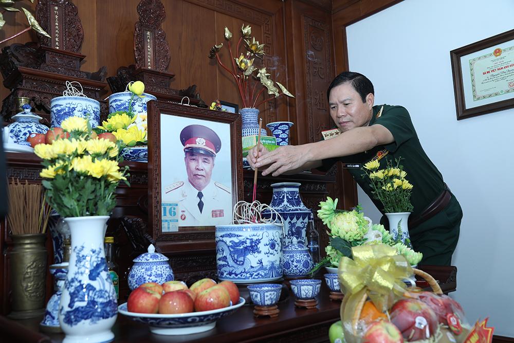 Đại tướng Nguyễn Tân Cương dâng hương tưởng nhớ Thượng tướng Nguyễn Khắc Nghiên.