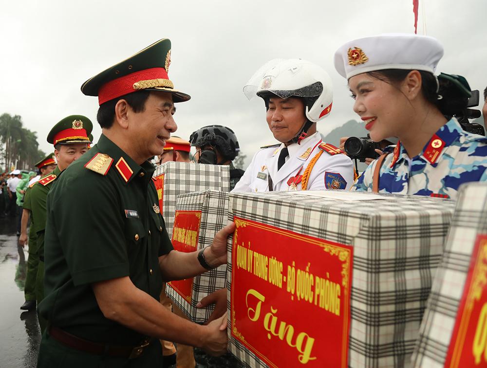Đại tướng Phan Văn Giang trao quà động viên các khối tham gia tổng hợp luyện.