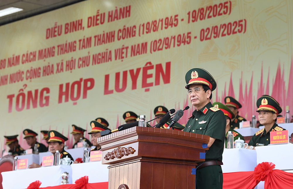 (Bqp.vn) - Sáng 16/8, tại Trung tâm Huấn luyện Quân sự quốc gia 4, Đại tướng Phan Văn Giang, Ủy viên Bộ Chính trị, Phó Bí thư Quân ủy Trung ương, Bộ trưởng Bộ Quốc phòng chủ trì kiểm tra tổng hợp luyện lực lượng diễu binh, diễu hành Lễ kỷ niệm 80 năm Cách mạng Tháng Tám thành công và Quốc khánh nước Cộng hòa xã hội chủ nghĩa Việt Nam (nhiệm vụ A80).