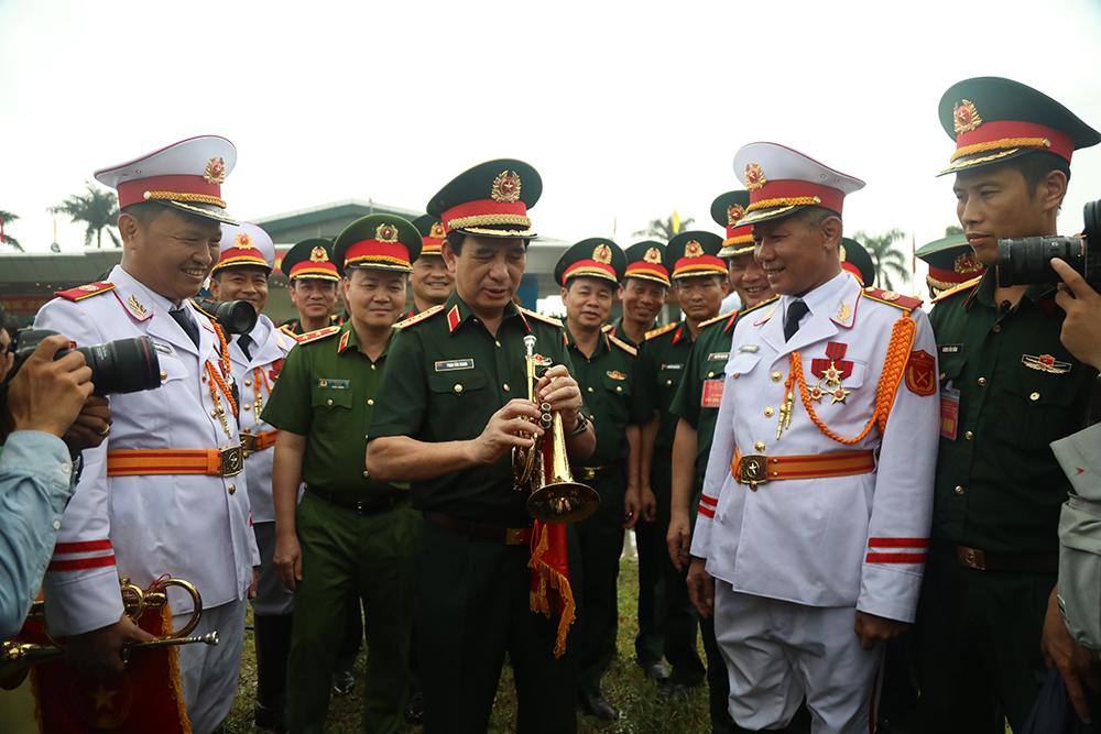 Đại tướng Phan Văn Giang động viên khối quân nhạc tham gia tổng hợp luyện.