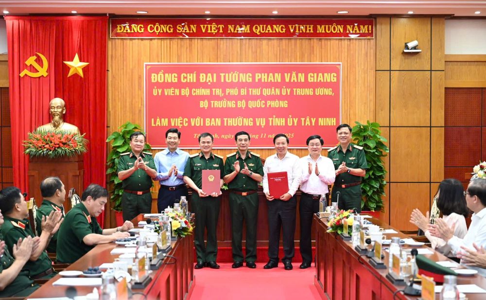 Kết thúc buổi làm việc, Đại tướng Phan Văn Giang chứng kiến ký kết thỏa thuận hợp tác chiến lược giai đoạn 2026 - 2030 giữa Tập đoàn Công nghiệp - Viễn thông Quân đội (Viettel) và UBND tỉnh Tây Ninh.