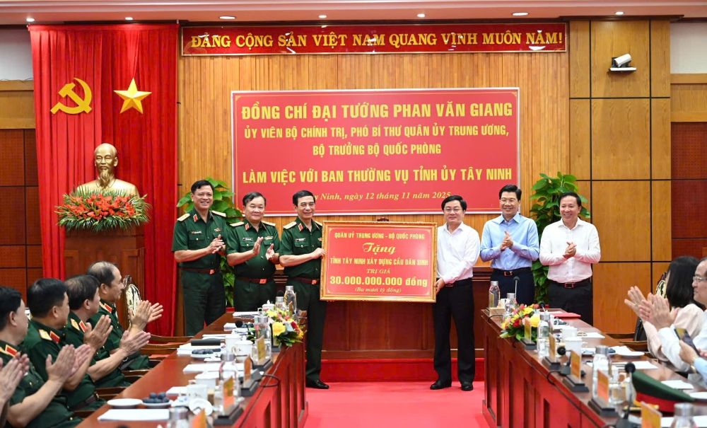 Cũng trong dịp này, Quân ủy Trung ương, Bộ Quốc phòng đã trao 30 tỷ đồng tặng tỉnh Tây Ninh dựng cầu dân sinh.