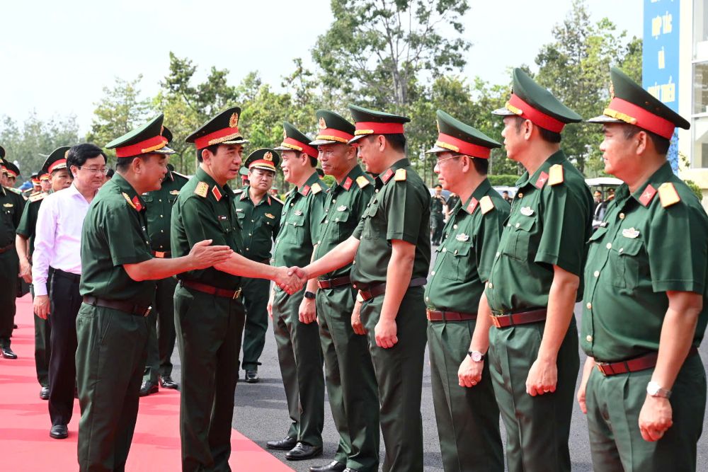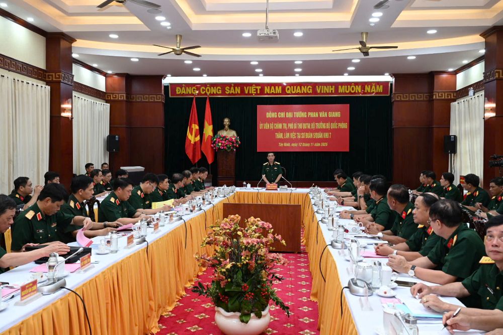 (Bqp.vn) - Chiều 12/11, Đoàn công tác Bộ Quốc phòng do Đại tướng Phan Văn Giang, Ủy viên Bộ Chính trị, Phó Bí thư Quân ủy Trung ương, Bộ trưởng Bộ Quốc phòng làm Trưởng đoàn đã đến thăm, làm việc tại Sư đoàn 5, Quân khu 7 về kết quả thực hiện nhiệm vụ quân sự 10 tháng năm 2025 và phương hướng, nhiệm vụ trong thời gian tới.