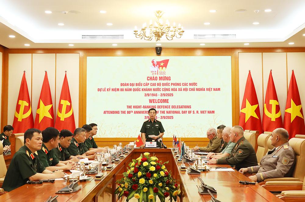 Tại buổi tiếp, Đại tướng Phan Văn Giang nhiệt liệt chào mừng và trân trọng cảm ơn lãnh đạo Bộ Quốc phòng, Quân đội các nước đã tới Việt Nam tham dự Lễ kỷ niệm 80 năm Quốc khánh nước Cộng hòa XHCN Việt Nam. Đây là minh chứng sinh động cho tình cảm hữu nghị, hợp tác và gắn bó giữa đất nước, Nhân dân và Quân đội các nước với đất nước, Nhân dân và QĐND Việt Nam. Đồng thời nêu rõ, 80 năm qua, dưới sự lãnh đạo sáng suốt của Đảng Cộng sản Việt Nam, dân tộc Việt Nam đã vượt qua nhiều thử thách, giành thắng lợi to lớn trong sự nghiệp giải phóng dân tộc, thống nhất đất nước, xây dựng và bảo vệ Tổ quốc. Trong chặng đường vẻ vang ấy, QĐND Việt Nam luôn là lực lượng trung thành, tin cậy, vừa là trụ cột trong bảo vệ độc lập, chủ quyền, vừa tích cực mở rộng hợp tác quốc phòng với bạn bè quốc tế, vì hòa bình, ổn định, hợp tác và phát triển.