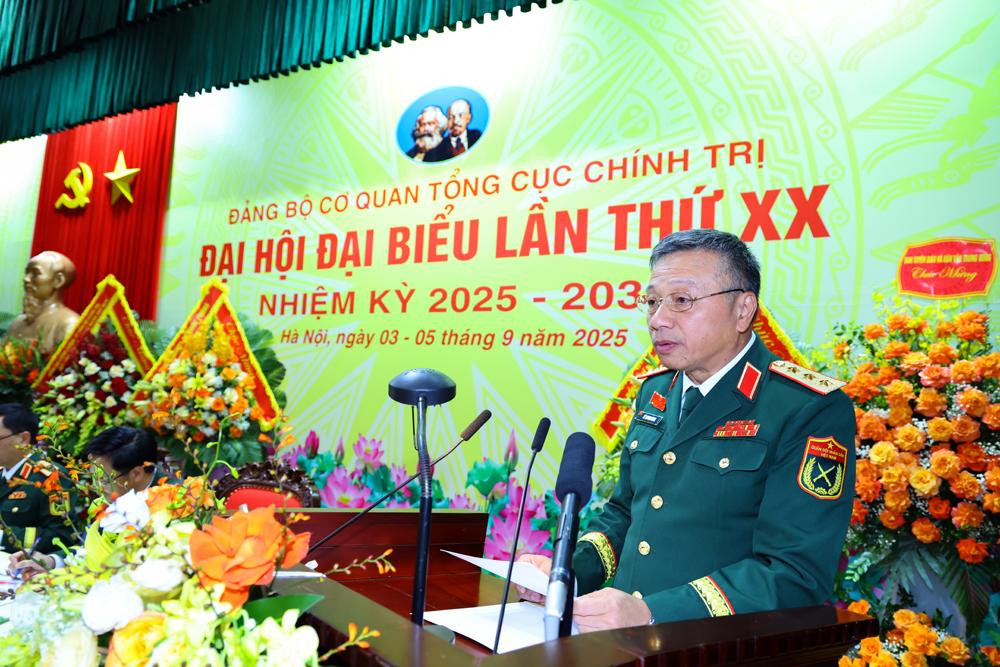 Báo cáo trung tâm và tham luận của các đại biểu thống nhất đánh giá: Nhiệm kỳ 2020 - 2025, Đảng bộ Cơ quan Tổng cục Chính trị đã quán triệt sâu sắc, cụ thể hóa và triển khai thực hiện nghiêm túc chủ trương, đường lối của Đảng, nghị quyết, chỉ thị của cấp trên; lãnh đạo cơ quan hoàn thành toàn diện các mục tiêu, nhiệm vụ Nghị quyết Đại hội Đảng bộ Cơ quan Tổng cục Chính trị lần thứ XIX đề ra, nhiều nhiệm vụ hoàn thành tốt và xuất sắc, nhất là những nhiệm vụ mới, khó, đột xuất.Nổi bật là đã tích cực, chủ động nghiên cứu, tham mưu, đề xuất với Trung ương, trực tiếp và thường xuyên với Quân ủy Trung ương nhiều chủ trương, giải pháp cơ bản, chiến lược xây dựng Đảng bộ Quân đội trong sạch, vững mạnh tiêu biểu; xây dựng Quân đội vững mạnh về chính trị, phát huy rõ nét chức năng của Quân đội; nâng cao trình độ cán bộ cấp chiến lược, chất lượng và hiệu quả công tác ngày càng được khẳng định; phẩm chất “Bộ đội Cụ Hồ” tiếp tục được phát huy, góp phần quan trọng giữ vững và tăng cường sự lãnh đạo tuyệt đối, trực tiếp về mọi mặt của Đảng đối với Quân đội.