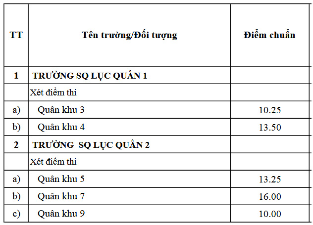 (Bqp.vn) - Ngày 22/8/2025, Ban Tuyển sinh quân sự Bộ Quốc phòng ban hành quy định Điểm chuẩn tuyển sinh đại học, cao đẳng quân sự hệ chính quy vào các trường Quân đội năm 2025, cụ thể: