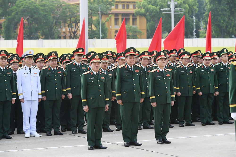 (Bqp.vn) - Sáng 24/9, tại Quảng trường Ba Đình, Quân ủy Trung ương, Bộ Quốc phòng tổ chức Lễ báo công dâng Bác của Đoàn đại biểu điển hình tiên tiến Đại hội Thi đua Quyết thắng toàn quân lần thứ XI. Thượng tướng Võ Minh Lương, Ủy viên Trung ương Đảng, Ủy viên Thường vụ Quân ủy Trung ương, Thứ trưởng Bộ Quốc phòng chủ trì buổi lễ.