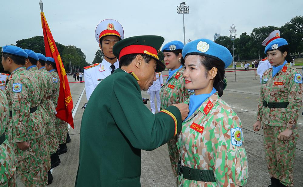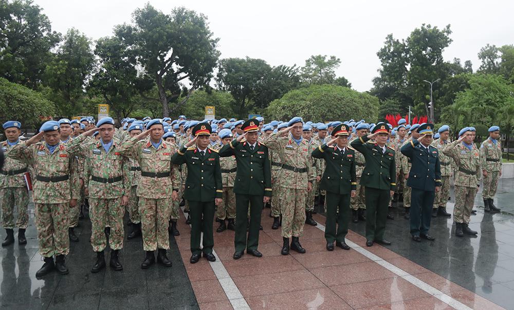 (Bqp.vn) - Sáng 23/9, tại Lăng Chủ tịch Hồ Chí Minh, Đội Công binh số 3 và Bệnh viện dã chiến cấp 2 số 6 (BVDC2.6) tổ chức Lễ báo công dâng Bác sau khi hoàn thành nhiệm vụ gìn giữ hòa bình (GGHB) Liên hợp quốc tại Phái bộ GGHB Liên hợp quốc khu vực Abyei (Phái bộ UNISFA) và Phái bộ GGHB Liên hợp quốc tại Nam Xu-đăng (Phái bộ UNMISS). Thiếu tướng Phạm Mạnh Thắng, Cục trưởng Cục GGHB Việt Nam chủ trì buổi lễ.