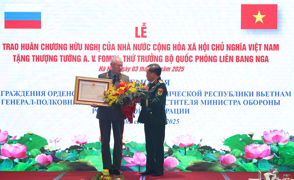 Nhân dịp này, thừa ủy quyền Chủ tịch nước, Thượng tướng Hoàng Xuân Chiến trao Huân chương Hữu nghị tặng Thượng tướng Alexander Vasilyevich Fomin. Kết thúc đối thoại, hai bên trao ký Biên bản đối thoại.