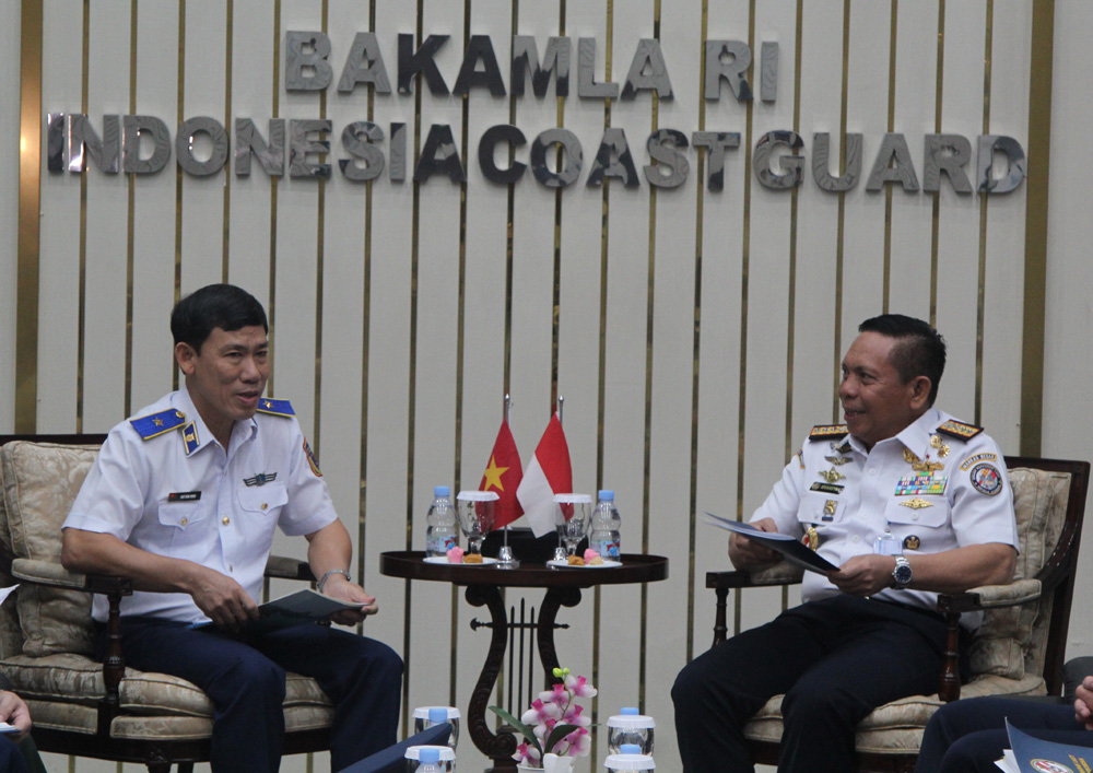 Trước đó, Đoàn công tác Cảnh sát biển Việt Nam đã đến chào xã giao Phó Đô đốc Irvansyah, S.H., CHRMP., M.Tr.Opsla., Tư lệnh Cảnh sát biển In-đô-nê-xi-a. Tại buổi tiếp, Phó Đô đốc Irvansyah bày tỏ sự vui mừng được đón đoàn, đồng thời khẳng định chuyến thăm là minh chứng cho quan hệ hữu nghị ngày càng sâu sắc giữa hai lực lượng, mở ra cơ hội thúc đẩy hợp tác trong thực thi pháp luật, bảo đảm an ninh, an toàn trên biển..