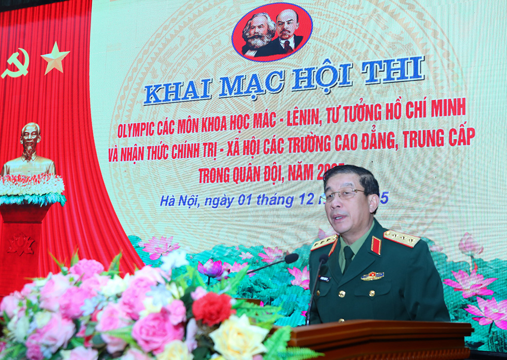 (Bqp.vn) - Sáng 01/12, tại Trường Sĩ quan Chính trị, Tổng cục Chính trị QĐND Việt Nam tổ chức khai mạc Hội khi Olympic các môn khoa học Mác - Lênin, tư tưởng Hồ Chí Minh và nhận thức chính trị - xã hội các trường cao đẳng, trung cấp trong Quân đội, năm 2025. Thượng tướng Trương Thiên Tô, Phó Chủ nhiệm Tổng cục Chính trị QĐND Việt Nam dự và phát biểu chỉ đạo khai mạc.