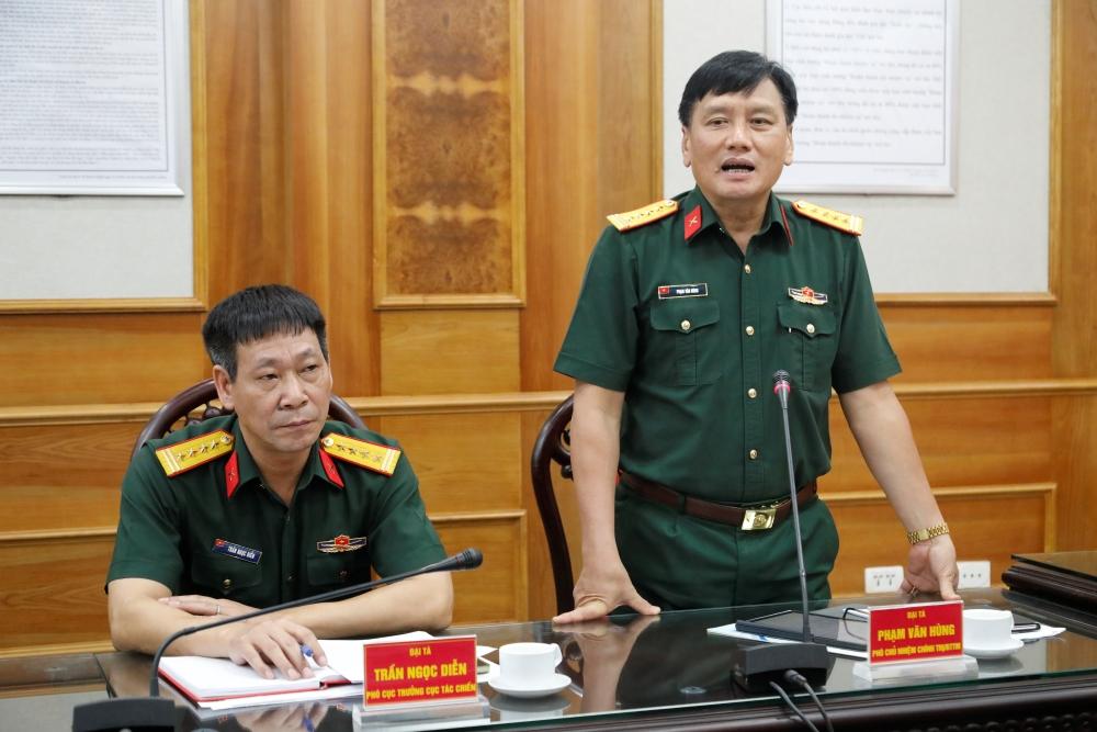 Đại tá Phạm Văn Hùng phát biểu tại hội nghị.