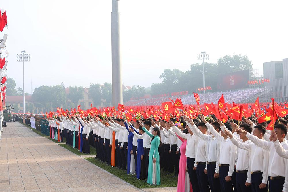 Khối cờ Đảng, cờ Tổ quốc tiến qua lễ đài.