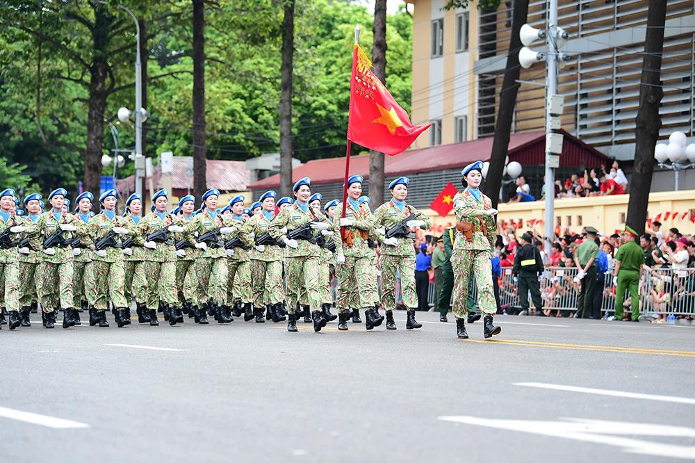 Khối nữ Sĩ quan gìn giữ hòa bình Liên hợp quốc (Quân đội nhân dân Việt Nam) đi qua các tuyến phố Hà Nội.