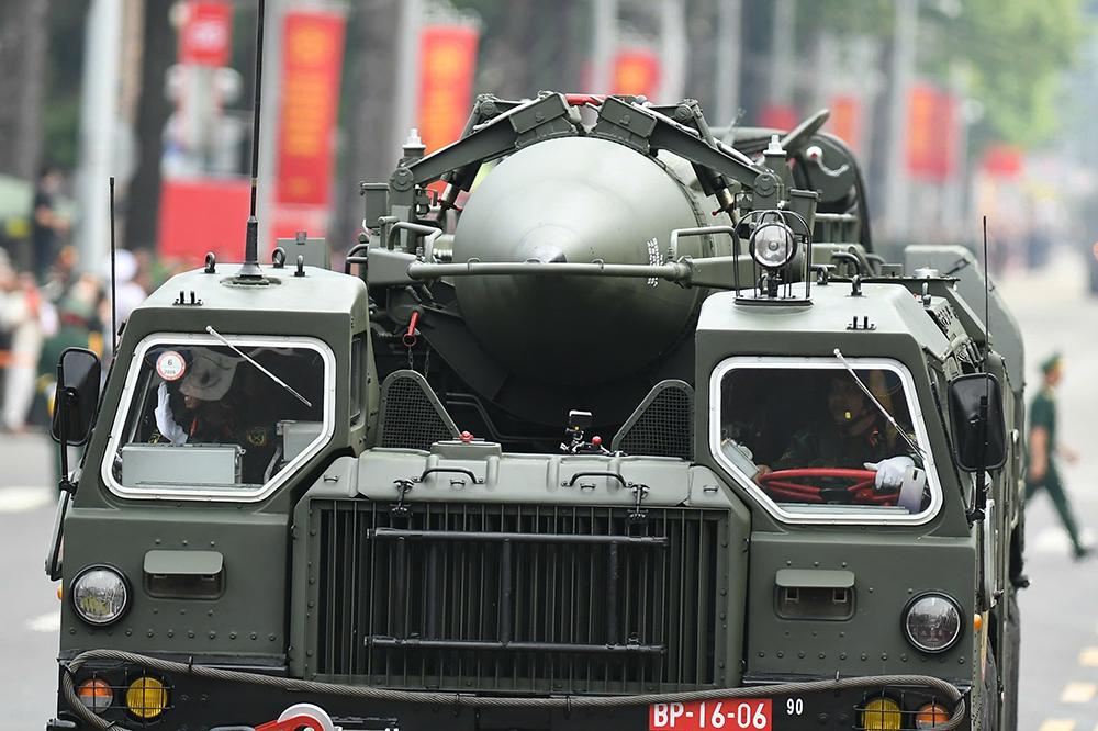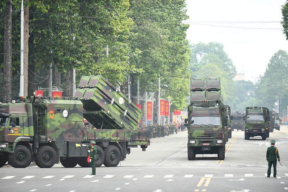 Xe chở Tổ hợp tên lửa Trường Sơn do Tập đoàn Công nghiệp - Viễn thông Quân đội nghiên cứu và sản xuất đi qua các tuyến phố Hà Nội.